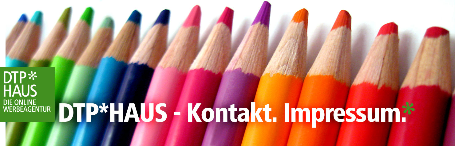 DTP*Haus bemüht sich, auf seiner Website zutreffende Informationen und Daten zur Verfügung zu stellen. Eine Haftung oder Garantie für die Aktualität, Richtigkeit und Vollständigkeit der zur Verfügung gestellten Informationen und Daten ist jedoch ausgeschlossen. Dies gilt auch für alle Verbindungen ("Links"), auf die diese Webseite direkt oder indirekt verweist. DTP*Haus ist für den Inhalt einer Seite, die mit einem solchen Link erreicht wird, nicht verantwortlich.